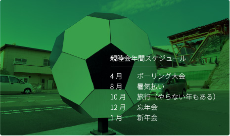 旅行を2年に1回計画、また、ボウリング、新年会等の親睦会を年5回程度行い、